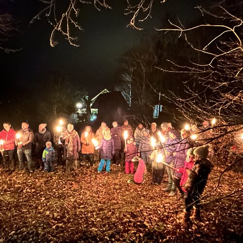 Fackelwanderung mit Andacht bei der Krippe am Froschteich