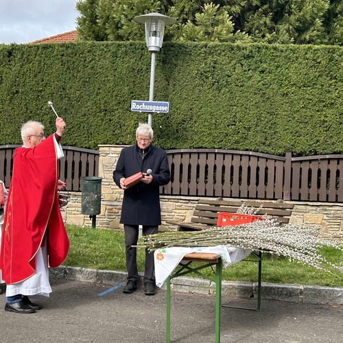 Palmweihe und Prozession Der Palmsonntag errinnert uns an den Einzug Jesu auf dem Esel nach Jerusalem. zu den Bildern: Palmweihe und Prozession