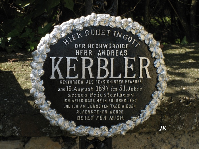 Im Hause Ollern Nr. 70 (jetzt Ollern, Hauptstraße 19) starb er am 16. August 1897. Pfarrer Andreas Kerbler hat seine letzte Ruhestätte auf dem Ollerner Friedhof.