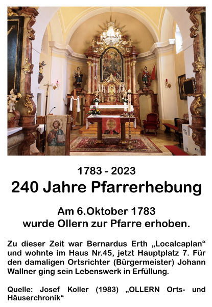 1783 Ernennung der Pfarre Ollern als eigenständige Pfarre.